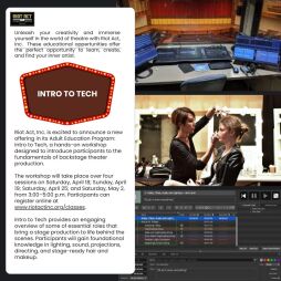 Intro to Tech: Join a class that introduces you to the fundamentals of what it takes to work backstage. In this class you will learn the basics of what behind the scenes jobs do to light up the stage.