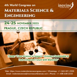 We are delighted to invite you to the 4th World Congress on Materials Science and Engineering (WCMSE 2025), hosted by Inovine Scientific Meetings in the historic city of Prague, Czech Republic. This prestigious international event will take place on November24-25, 2025, offering both in-person and virtual participation options.