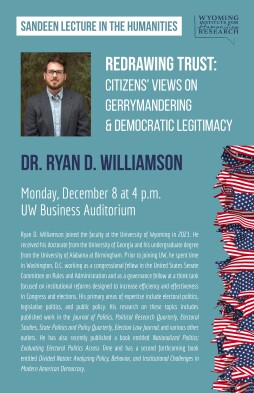 Ryan D. Williamson, a University of Wyoming assistant professor in Political Science, will deliver this year’s Sandeen Lecture in the Humanities Monday, Dec. 8, at 4 p.m. in UW’s Business Auditorium.