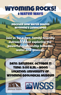 The Wyoming State Geological Survey and UW Geological Museum invite you and yours to join us for Wyoming Rocks! Water Ways, a free, family-friendly outreach event at the University of Wyoming Geological Museum.