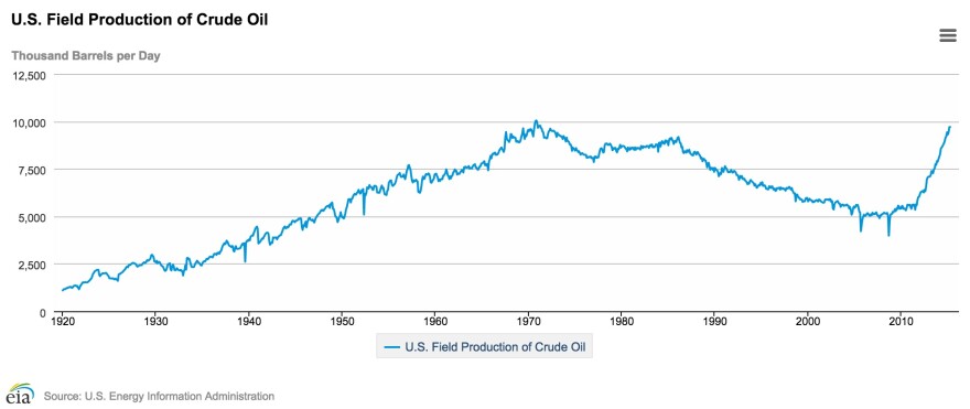 Despite the recent downturn in prices, oil production in the US has continued to climb.