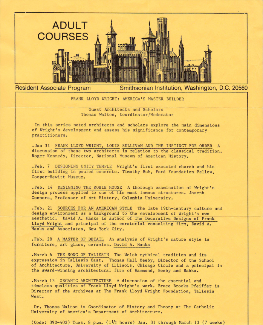 Because of his prolific career, Frank Lloyd Wright is one of the most studied designers in the U.S. Urban planner Frederick Albert Gutheim dedicated years of research and lectures to Wright.